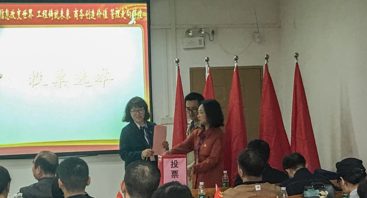 接着,按照组织程序,大会表决通过选举办法及监票人、计票人、唱票人人选。选举正式开始,监票人首先清点到场党员人数,确认本次选举符合组织程序。本次选举采取无记名方式投票,各位有表决权的党员为党总支的未来与发展投出了自己的神圣一票。经过计票清点,伴随着热烈的掌声,监票人向全场党员宣布了当选新一届党总支委员的五名同志:李新、凌红、刘杰、章小剑、安春志。
