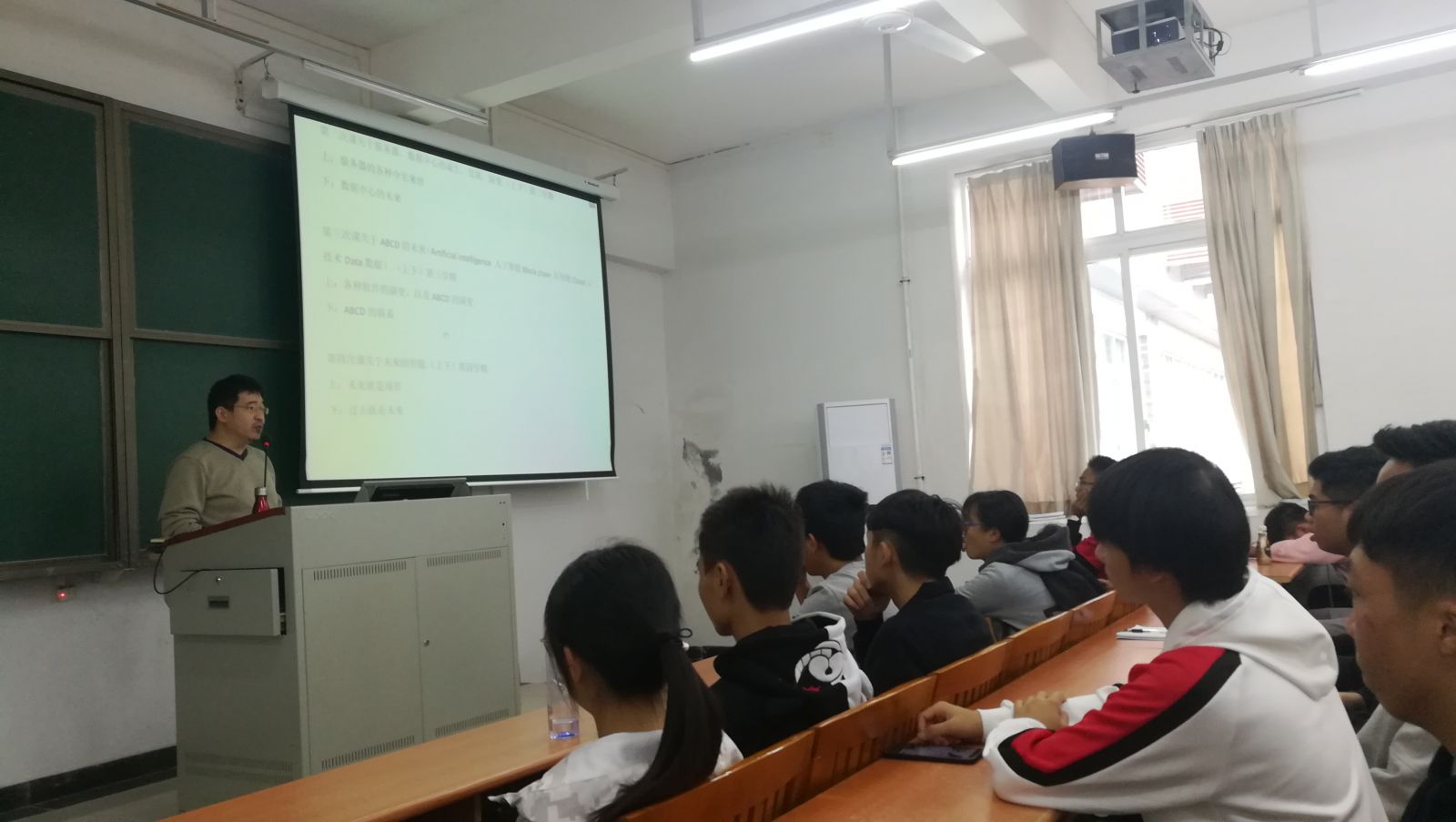 12月7日,信息工程与商务管理学院在教学楼305举办了一场关于“通讯、互联网、移动互联网、物联网的演变”主题专业讲座,讲座邀请广东登世数据技术有限公司董事长陈稳照。陈总是我校的优秀毕业生,并为信息工程与商务管理学院的聘请的客座教授。这次讲座主要是18级计算机网络技术专业1、2班的学生参加。讲座是在下午2:30开始,历时2个多小时。