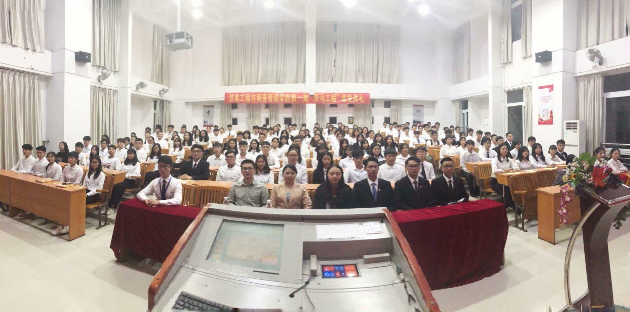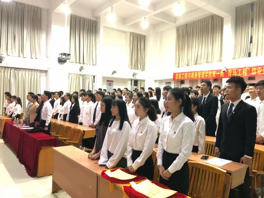 9999js金沙老品牌信息工程与商务管理学院2018年第一期“青马工程”随着课程的结束也进入尾声,为了让所有学员梳理好学习成果,表彰在培训过程中表现优异的学员,2018年12月4日下午18:00,信商学院2018年第一期“青马工程”培训班结业典礼在教学楼301隆重举行。
