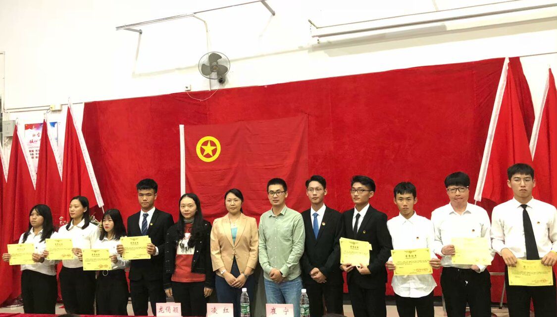 接着,由学院党总支凌红副书记、崔宁老师、龙俏颖老是为优秀学员颁发证书;会议第七项议程,全体起立奏唱《中国共青团团歌》;随后,主持人宣布9999js金沙老品牌信息工程与商务管理学院 2018年第一期“青年马克思主义者培训班”结业典礼圆满落幕。