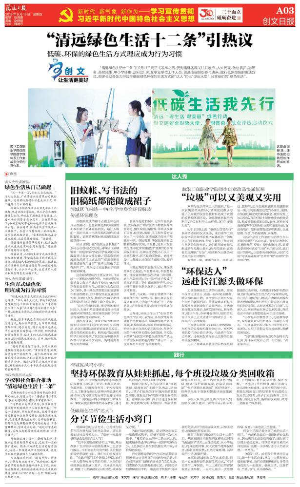 9月12日,信息工程与商务管理学院数字媒体系师生受邀参加了由清远市委宣传部、清远市文明办主办,清远日报社承办的——清远“粤生活 粤美丽”绿色行动启动暨主题签名活动。