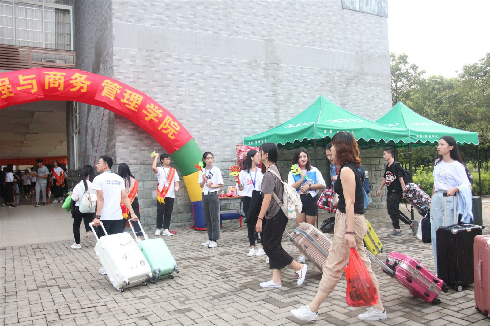 金秋九月,清风徐徐。又是一年开学时,信息工程与商务管理学院迎来了2018级青春洋溢的新同学。9月7日上午6:20,信商学院团委学生会各部门干部、迎新志愿者以及新生班导齐聚教学楼一楼架空层布置迎新会场。七时整,信息工程与商务管理学院迎新工作全面启动,为确保迎新工作的顺利开展,信商学院党总支书记、院长李新、常务副院长肖伟、党总支副书记凌红、副院长刘杰、副院长杨家成以及信商学院二十多名老师全天候坐镇指导。