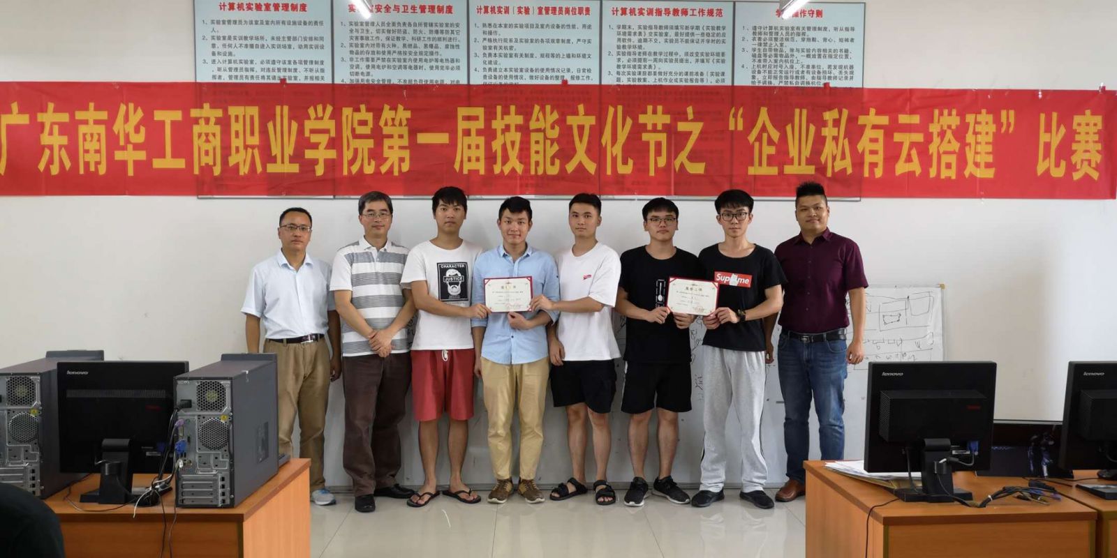 为丰富大学生校园文化生活,营造学生活动专业化氛围,于2018年6月24日举办了第一届技能文化节之“企业私有云搭建”赛项。本次技能大赛得到了学校团委、信商学院领导的高度重视与专业教师的大力支持。比赛当天,信商学院副院长杨家成亲临现场指导,号召大家发扬信商学院在技能比赛中的优良传统,勉励大家赛出水平赛出风格,最后为赛项获奖选手颁发奖状证书。