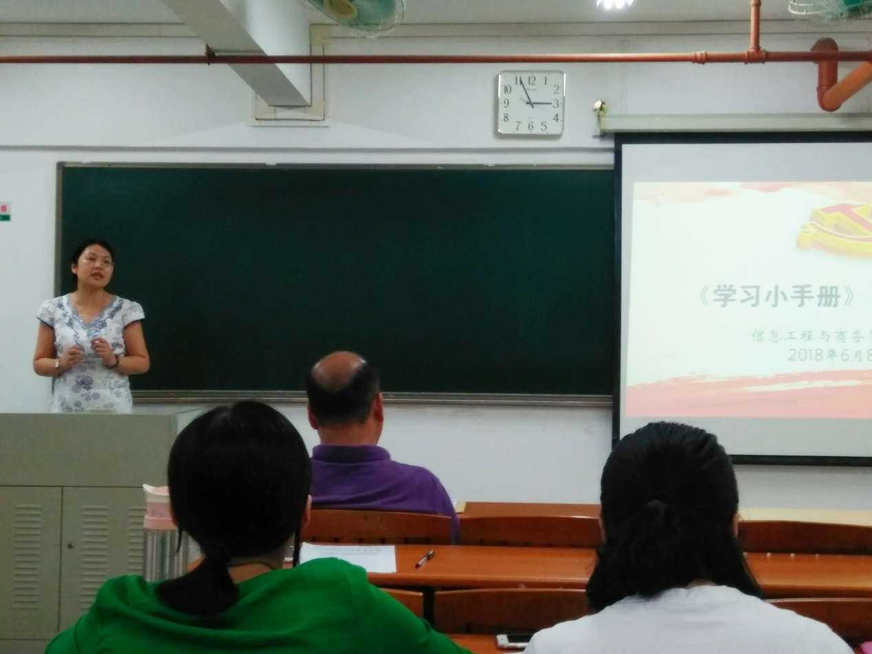 6月8日下午,信商学院在天河校区502组织召开了全院教职工大会,会议共两项议程,由党总支副书记凌红主持。