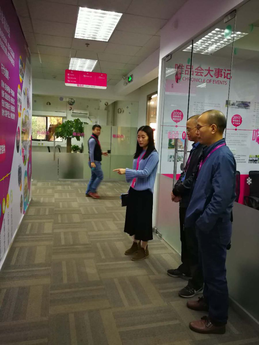 2018年1月4日,受唯品会邀请,信商学院肖伟常务副院长带领电商专业佘碧蓉、贾晓松老师,到唯品会位于广州芳村总部,一方面与唯品会人力资源刘小姐讨论具体的合作方案,一方面了解唯品会的办公环境,饭堂环境,住宿条件等。