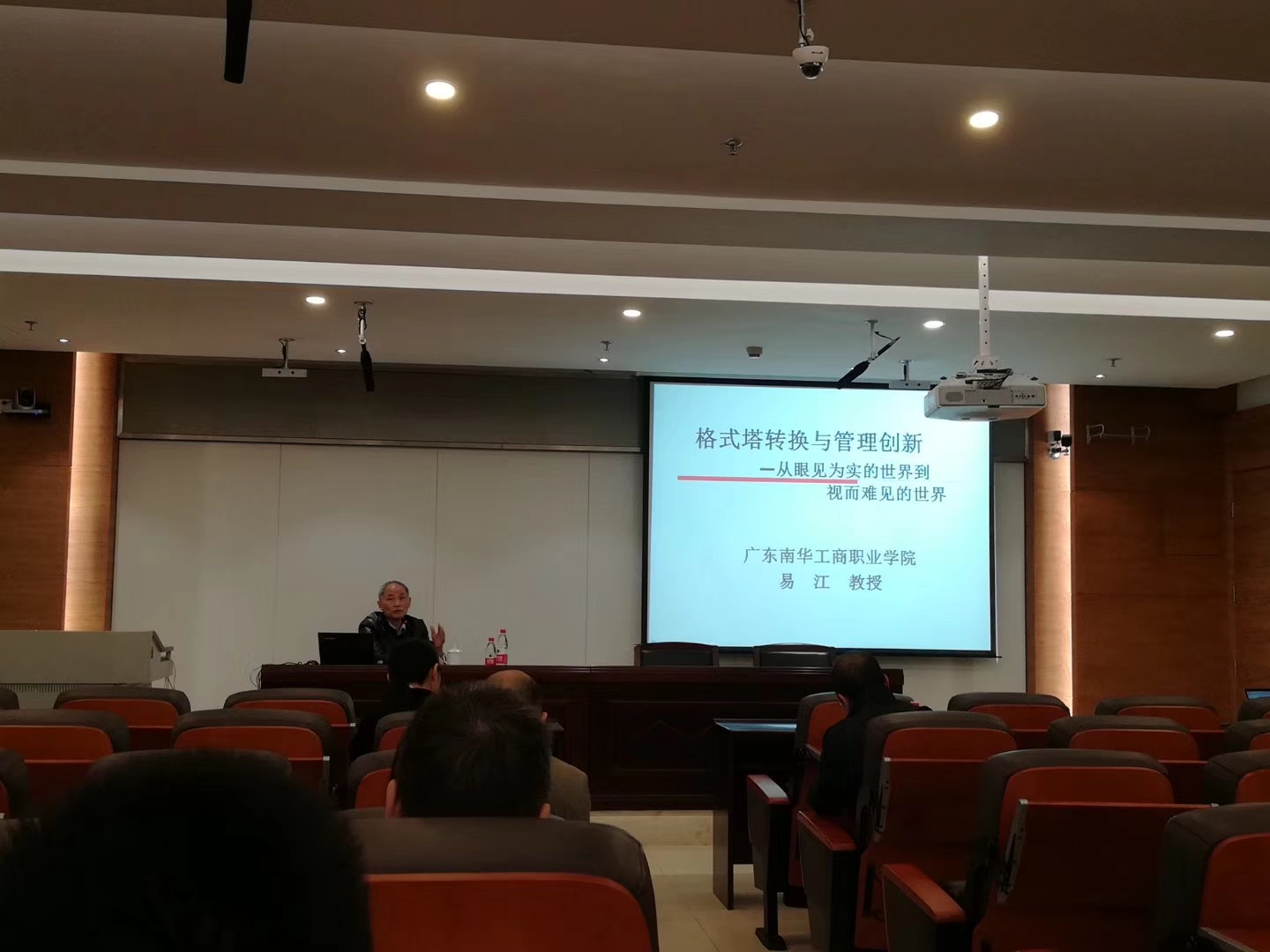 2017年12月22日下午2点半,易江教授在天河校区培训楼阶梯101课室为信息工程与商务管理学院及思政部教职工开展了一场思维转换与思想碰撞的讲座----《格式塔转换与管理创新》。讲座全程2小时。