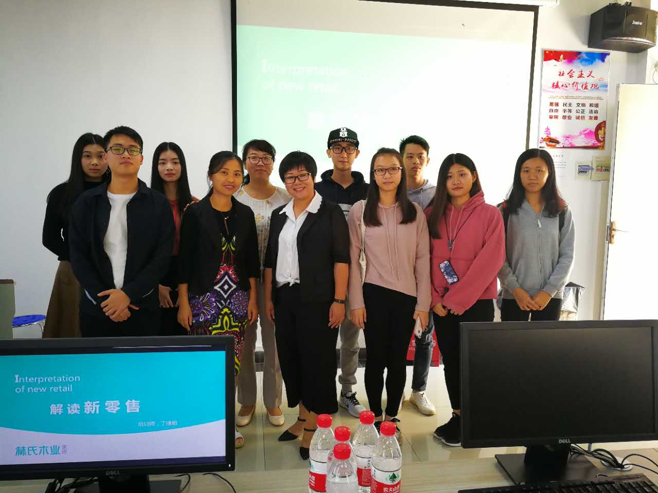 为进一步深化校企合作、产教融合、提升学生职业素质和能力,10月31日林氏木业受信商学院的邀请,由林氏木业培训总监丁捷敏带队来到我校清远校区,给16级电子商务专业的学生授课,授课内容是解读新零售。