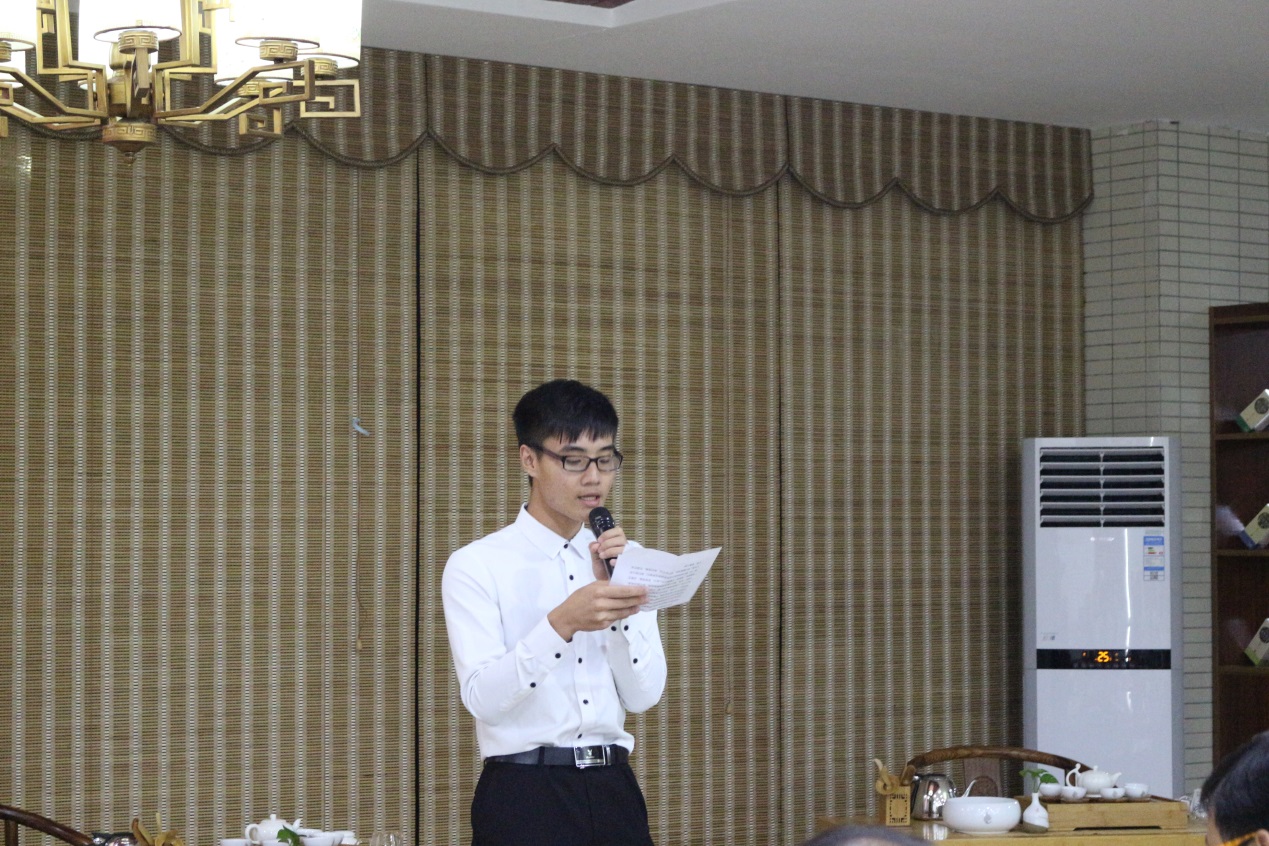 经过个人报名、两轮面试,茶室产生了第二届运营团队,由陈华老师宣读第二届运营团队成员名单。第二届店长陈良川同学进行发表就职感想,不仅宣布了其在各个方面的工作计划,还对这些计划的圆满实施作出了保证。说明了自己工作设想的同时表达了自己对其工作顺利完成的决心。表示将以饱满的热情,带领团队继续打造“文化茶室、休闲茶室、公益茶室”。
