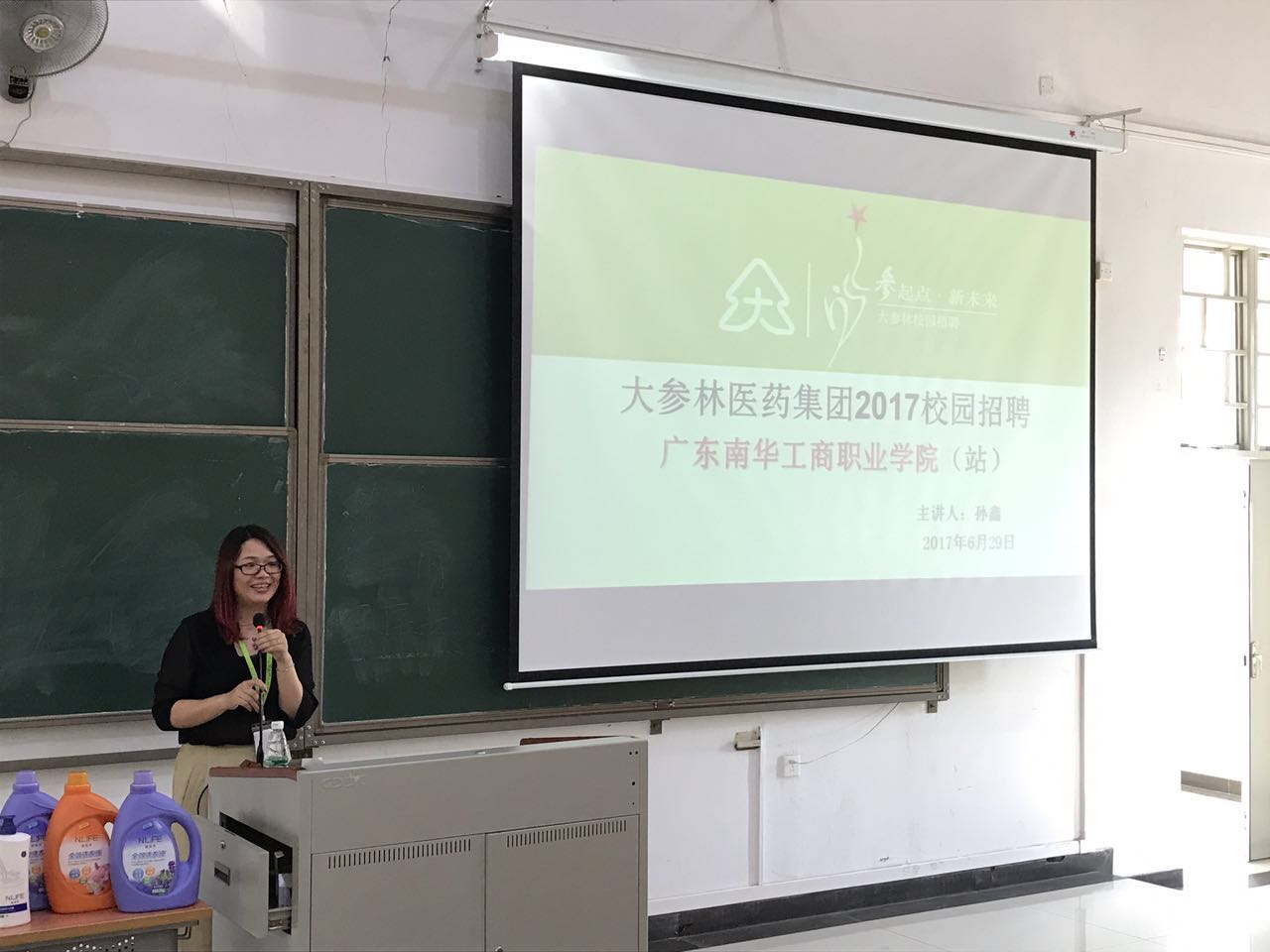 宣讲会开始之前,大参林粤中大区清远营运区饶水群主管进行讲话,饶主管从自己的亲身经历来激励大家,工作要踏踏实实,由基础做起,一步一步才能实现自己的目标。接着,粤中大区番禺营运区人力资源部孙鑫主任进了一场生动的校园宣讲,介绍了大参林医药集团的发展历程、企业文化、人才培养模式、经营模式等。同学们都饶有兴趣的听了这次宣讲会,能够在大一的时候就能接触到企业,对于学生今后的职业发展规划都有积极的影响。