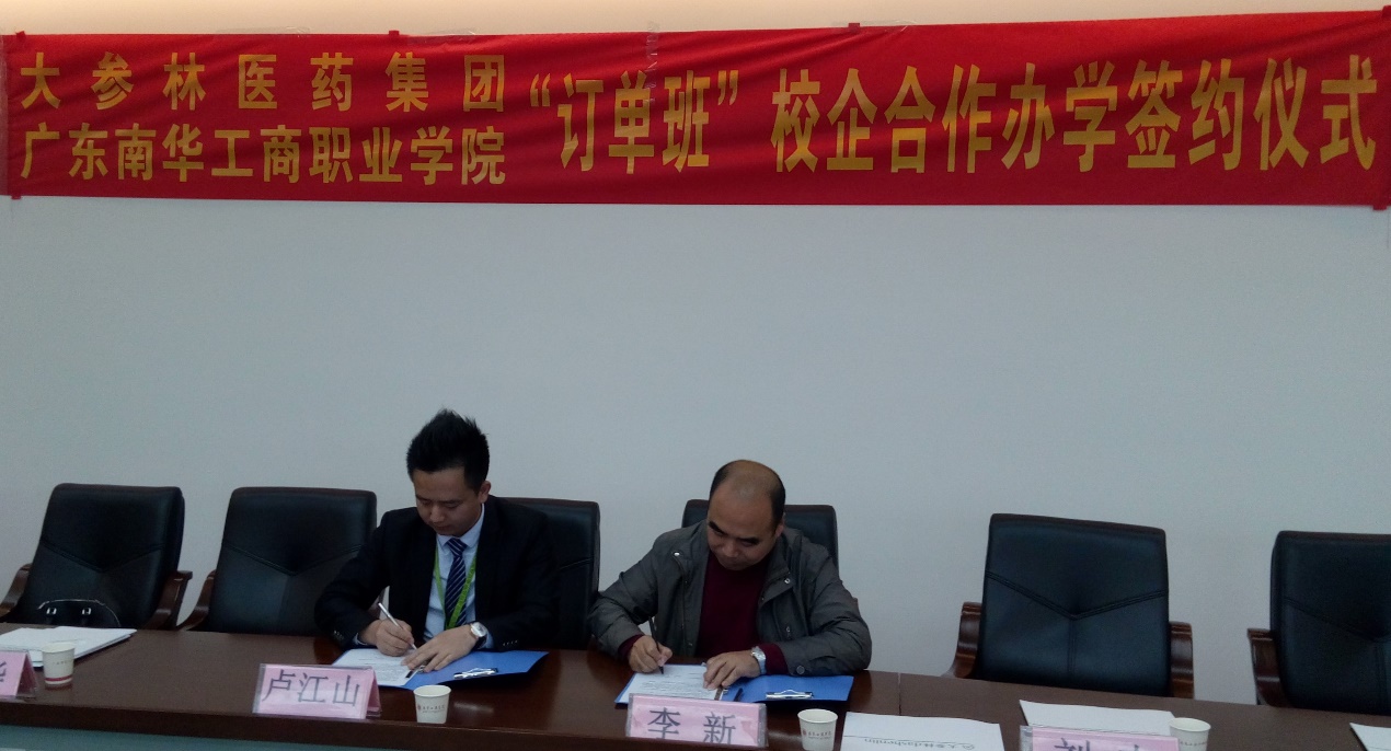 早上10点,“订单班”校企合作办学签约仪式正式开始:首先是药品经营与管理专业负责人王有志老师致辞开幕,介绍到会的企业高管和学院领导;紧接着是清远校区综合办韦秀华主任致辞,代表学校表达对此次签约仪式的高度重视和关心,积极配合相关工作的开展;接着,是大参林医药集团代表人力资源部总监卢江山发言,表达与我校合作的诚意和对校企合作办学的充分肯定和大力支持。