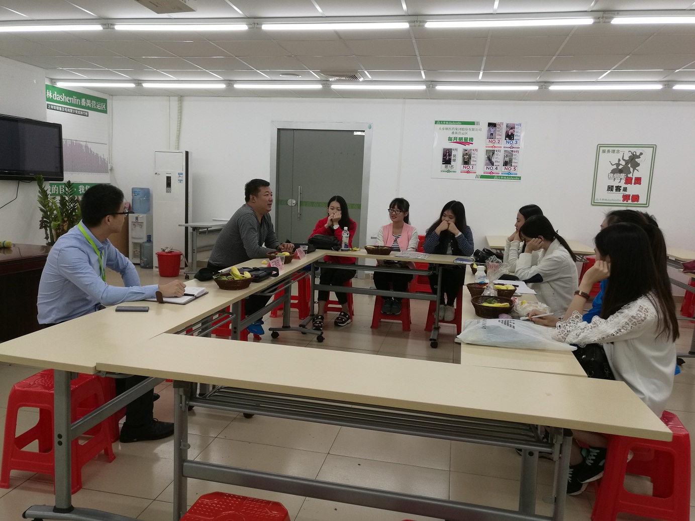 这些实习生都是药品经营与管理专业三年级的同学,入职将满一个月。离开校园,初入职场,对工作、对公司、对自己都会有一个新的认识和想法,思想难免会有一些变化。我们此行的目的,就是让要了解我们参加毕业实习学生的实时动态,密切关注他们的实习生活情况,了解企业对我们学生的评价,加强学校、企业、学生三方的沟通交流,为进一步深化校企合作打下良好基础。