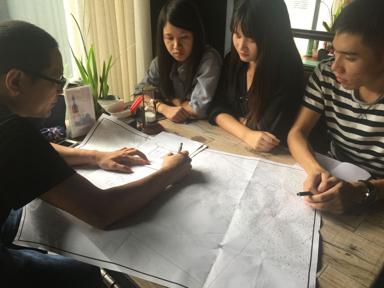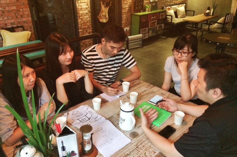 师生团队与万众丰电商项目总监张晓东在园区咖啡厅内进行了三个半小时的分析会,对项目构架和时间流程进行深入沟通,现场组成合作小分队,主攻品牌VI和移动电商广告。