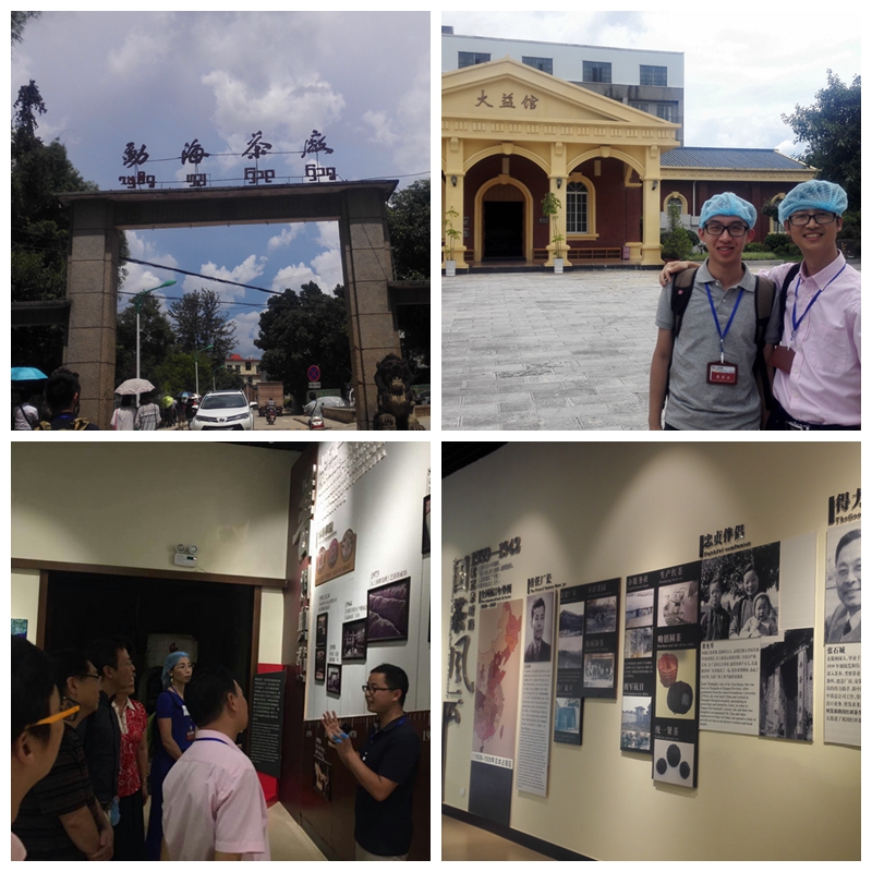 参观大益馆、大益馆门前合影、勐海茶厂门口、大益馆内部