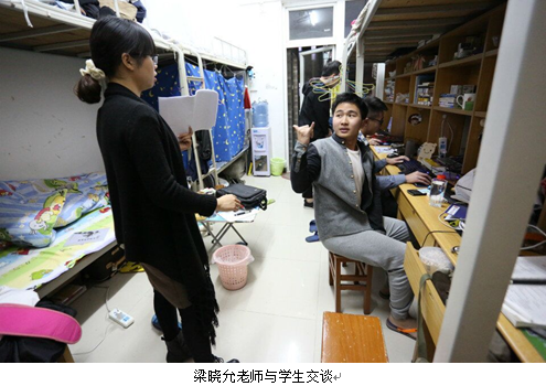 各位老师的到来,给刚下课回宿舍的同学们送去了温暖和关怀。在看望大二学子时,阔别一个多月的老师和同学们像亲人一样地亲切问候,随后老师们仔细询问了大二学子们英语考级以及各科目成绩,并鼓励他们努力为学弟学妹做表率;在走访大一宿舍时,老师对大一学生十分关心,不仅询问他们对大一上学期生活和学习的感想及今后规划,还嘱咐大家注意天气变化;另外,我院学生宿舍的整齐、干净也给老师们留下了深刻印象。