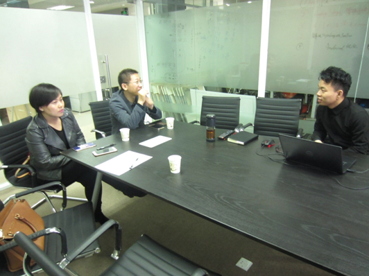 在两个半小时的座谈会中,世云市场部王俊经理首先向教师团队介绍了旗下产品的研发和盈利模式、对网络环境的配置要求、Html5技术的应用现状、视觉传达设计发展趋势、UI交互设计岗位职能以及商业项目中多屏互动、大屏交流等功能。