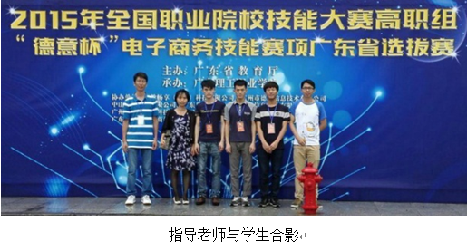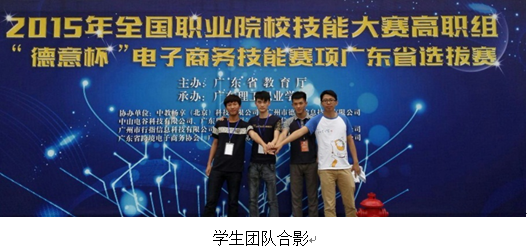 2015年5月9日,由广东省教育厅主办的“2015年全国职业院校技能大赛高职组广东省选拔赛电子商务技能比赛”在广东理工职业学院举行,由我院2013级电子商务专业学生詹汉城、罗益鑫、冼保华以及信息管理专业学生郑炳东组成的团队在本次比赛中荣获三等奖。
