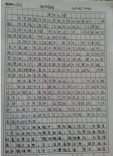 自超市建立以来,我院08级、09级、10级、11级、12级、13级工商企业管理专业学生均参加了认知实习。实践中的感悟为接下来市场营销,物流管理,门店运营、商务谈判与推销技巧等课程的学习打下了基础,并有利于树立劳动观点、集体观点和创业精神,提高专业基本素质。