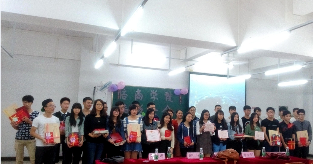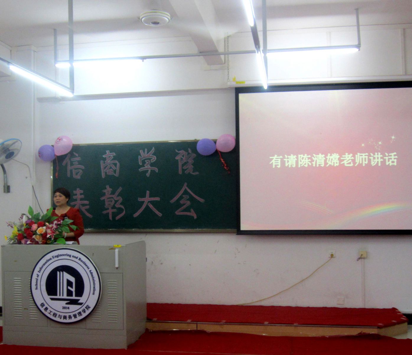 2015年4月21日晚上18:40,信息工程与商务管理学院(以下简称信商学院)在清远校区实验楼316举办了2013-2014学年表彰大会,出席此次大会的有辅导员陈清嫦、陈华、章小剑、袁小梅及崔宁这五位老师。信商学院13级14级各班班长及学生代表均参加了此次大会。