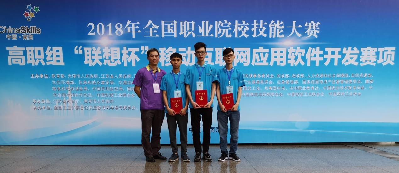 2018年全国职业院校技能大赛高职组“移动互联网应用软件开发”赛项,由教育部联合江苏省人民政府、科技部和工信部等35家部委、单位共同举办,江苏省教育厅、南京市人民政府承办,全国工业和信息化职业教育教学指导委员会、南京工业职业技术学院、联想集团共同协办,于5月19-22日在百年名校南京工业职业技术学院举行。我校参赛团队经过四小时紧张激烈的角逐,摘得团队二等奖,在95支参赛队伍中脱颖而出,实现了本校参加此项赛事的历史突破。本次参加比赛的95支代表队来自全国29个省、直辖市、自治区,是经过层层选拔而出的优秀队伍。参赛选手、指导教师、领队共计570人,参赛的覆盖范围和规模创本赛项新高。