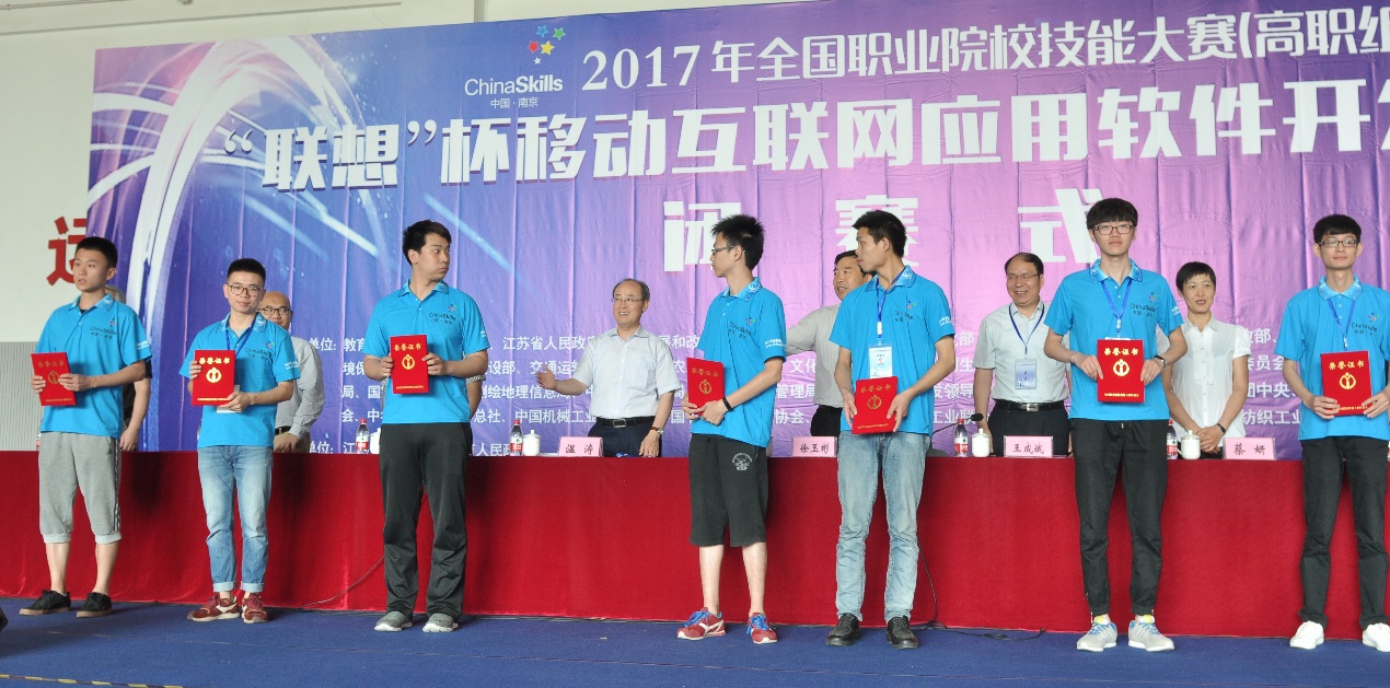 6月7日,由教育部联合三十多个部委主办的2017年全国职业院校技能大赛高职组“联想”杯“移动互联网应用软件开发”赛项在南京工业职业技术学院举行,来自全国92所高校276名选手同台竞技。我院由信商学院杨家成、刘万授老师指导,邱嘉城、张展航、陈招楚同学组成的参赛队经过层层选拔,代表广东省参加了本次比赛。经过四小时激烈比拼,最终荣获团队三等奖,在92支参赛队中名列第34名,这是我院首次参加全国职业院校技能大赛并取得历史性突破。