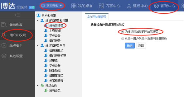 4. “为站点添加新的网站管理员”