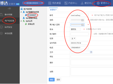备注:若需要进行其它方面的管理和维护,可在此自定义任何权限,如用户管理、网站应用、网站建设、网站运营等。