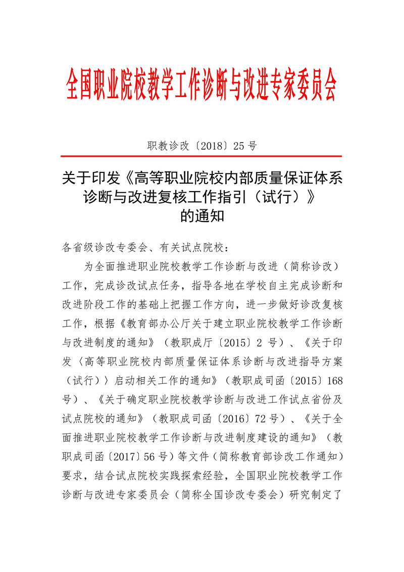 职教诊改复核指引〔2018〕25 号
