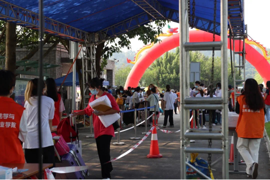 欢迎你们的到来!清晨,校门口就已经排满了队伍,来自五湖四海的南华萌新们,已经迫不及待的与南华初见。校道中,楼道间都是志愿者在为新同学提供暖心便利,与此同时,招办助理也在热情的为新生解答疑惑。