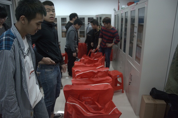 当晚九点整,唐主任、邱老师、张老师和学生干部召集本次参与派送礼物的男生在学生宿舍一栋楼下集中,带着精心准备的贺卡和小礼物到各栋女生宿舍进行节日慰问。虽然天空下着蒙蒙细雨,但丝毫不影响同学们的热情。每一位女同学在收到礼物后,嘴角洋溢着甜蜜的笑容,无疑是活动最大的收获!