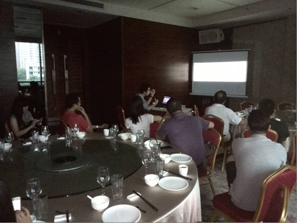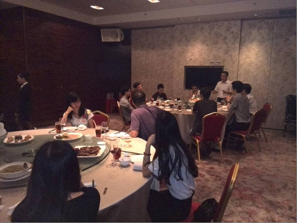 此次走访交流活动的最后一个项目是小型系友聚会,尽管从中午开始就风雨大作,尽管都很忙,尽管可能互相不认识,但07届、08届、11届、14届、15届等都有若干系友积极赶过来赴会。聚会时环境艺术设计专业08届系友李超同学借用酒店投影设备给大家展示了其所在公司——深圳市派尚环境艺术设计有限公司的设计作品和设计理念,作为引子引导系友展开各方面的交流和讨论。在聚会上老师们和“同学们”叙述旧情,结交新知、交流信息和经验,欢聚一堂,其乐融融。