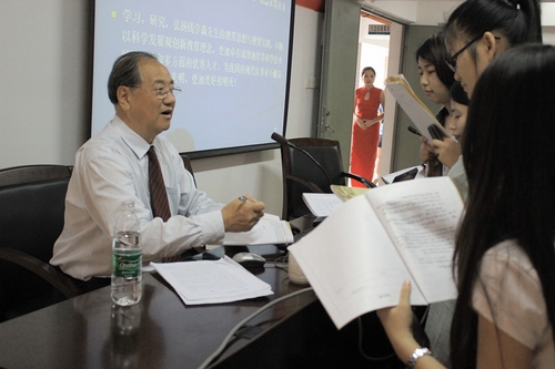 6月7日下午,“与信仰对话 飞young中国梦”名家报告进校园活动在天河校区综合楼902课室进行。本次活动内容是钱学森先生的学生、中国科学院的张瑜教授作“百人一院士,千人九将军—钱学森先生是如何培养办学和培养人才”为主题的报告会。学院易江院长、张皖明副书记全程参与,与天河、黄埔校区160多名师生一起聆听了报告会。报告会由学院易江院长主持。
