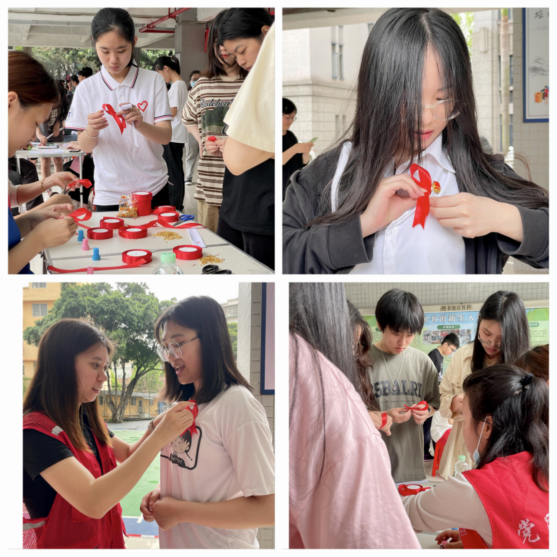 活动开始,党员同志和工作人员在现场化身志愿者设置了五大“关卡”,提供了自制红丝带、为“艾”添彩、防“艾”知识问答、正视“艾”、为“艾”套圈等丰富有趣的游园项目。同学们以集印章的方式,逐项闯关集满印章,最后赢取防“艾”纪念礼品。轻松有趣的活动氛围吸引了众多师生前来参与,大家在游玩过程中学习了防艾知识,了解了如何理性面对和关爱艾滋病群体,提升了自我防护技能。