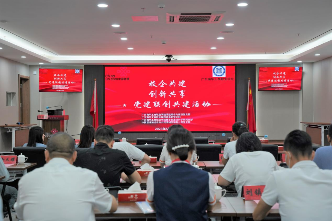 清远综合办副主任方永航肯定了清远联通在通信领域的技术优势和能力,希望双方可以更好地进行合作和党建共建,并对我校的办学特色及三个党支部的基本情况作了详细介绍,特别展示了国匠楼、中华优秀传统文化传承基地—英石盆景技艺建设情况、天鹅湖造景以及“非遗·国匠”特色美育品牌的打造。