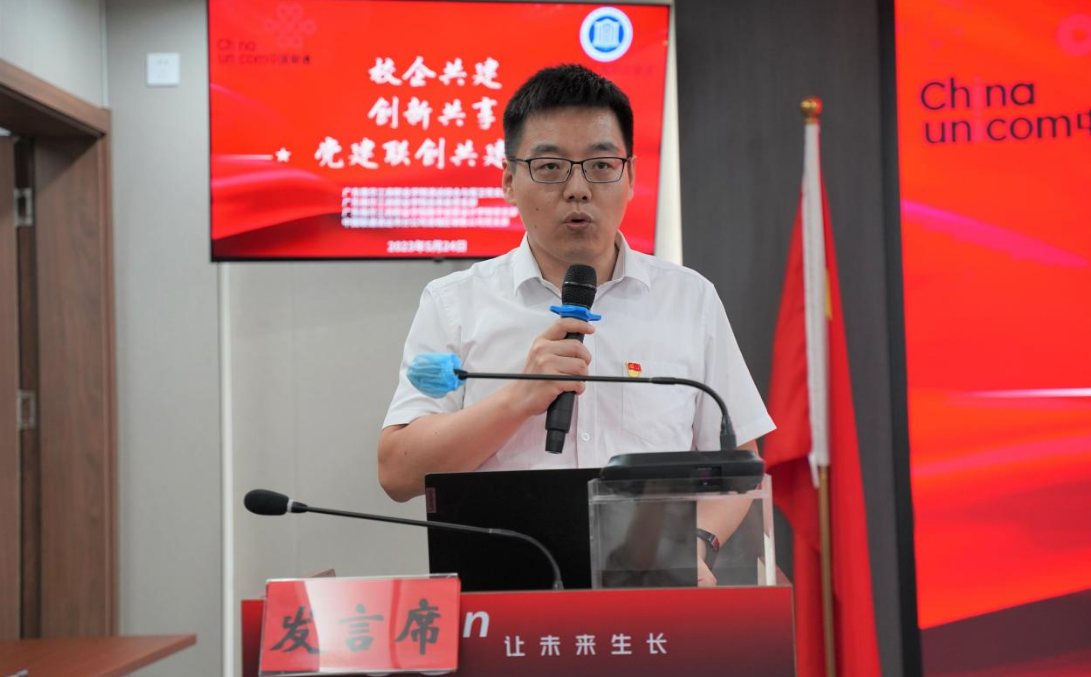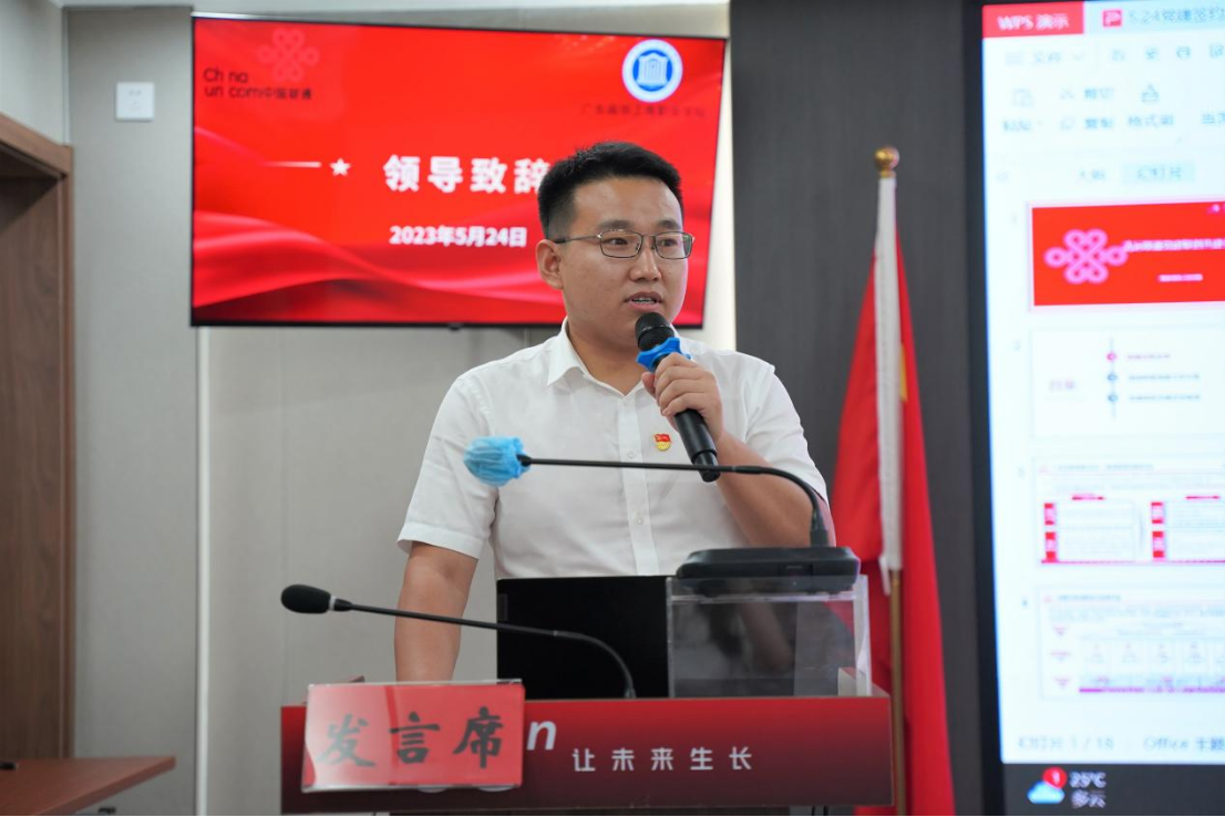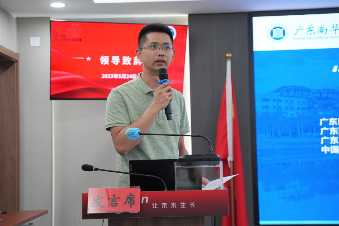 随后,清远联通杨柠旭同志介绍清远联通整体情况、党建联创共建合作规划,并展示了清远联通在党建联建及建校园信息化建设的突出案例。
