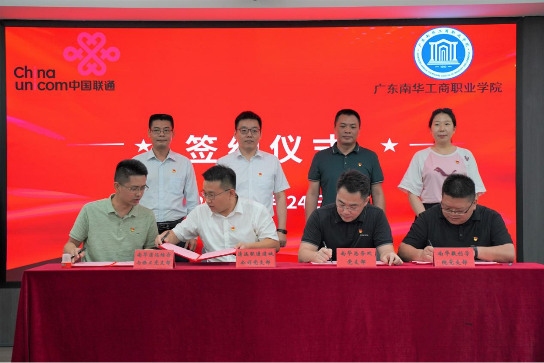 5月24日下午,清远综合与保卫党支部、总务处党支部、数字创意设计学院党支部与中国联通清远市分公司清城区销售公司党支部在清城区联通销售公司党建会议室开展“校企共建,创新共享”党建联创共建活动暨签约仪式。总务处党支部书记陆飞宇、清远综合办副主任方永航、保卫处副处长袁维松、总务处副处长廖陈兴、数创学院学生工作负责人邱伟波、清远联通党委委员、副总经理朱国相、清远联通清城区销售公司党支部书记杨柠旭等四个支部的全体党员同志出席了活动。此次活动主要有党建交流、党建联建签约、参观红色基地三个流程。