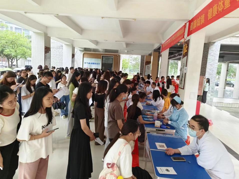 接着门诊部一行开展义诊活动。现场按照不同健康领域划分为内科、外科、妇科、眼科、中医科、营养科六个科室,为师生免费测量血压血糖、身高体重、体脂分析等项目。义诊医生针对师生平常的健康问题进行答疑解惑,普及健康知识,还根据相关数据进行针对性指导,从合理膳食、营养搭配、科学运动、心理调节等方面给予健康建议。