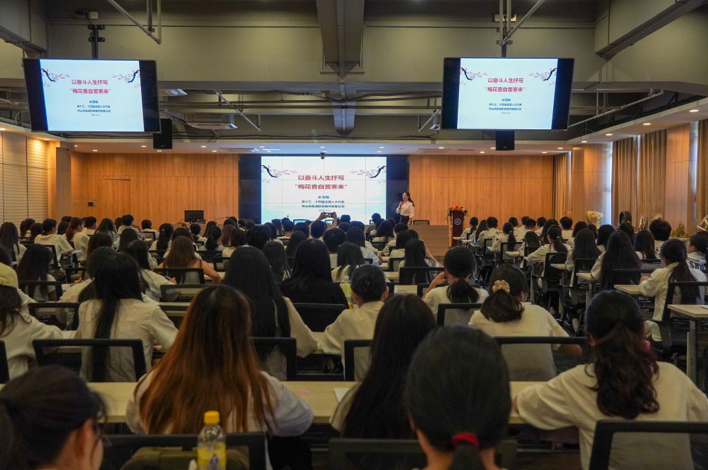 米雪梅以她丰富的个人成长经历为引子,为在场师生深情讲述了自己南下广东,在服装厂务工的艰苦岁月。初来乍到,她面对的是陌生的环境、艰苦的条件和种种挑战,然而,正是这些艰难岁月的磨砺,让她更加坚定了自己的信念,也让她明白了“梅花香自苦寒来”的道理。她用自己的实际行动,诠释了什么是真正的劳模精神、劳动精神、工匠精神。
